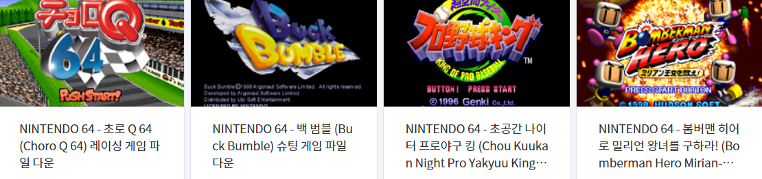 | 에뮬레이터 닌텐도 64 (N64) 전용 게임 4 타이틀 다운로드 2021.5.12 (0) | 2021.05.12 |
